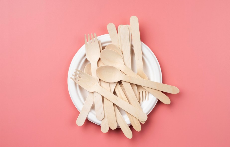 - Wooden cutlery. Stands out for its natural appearance and low environmental impact. The wood used comes from responsibly managed sources.