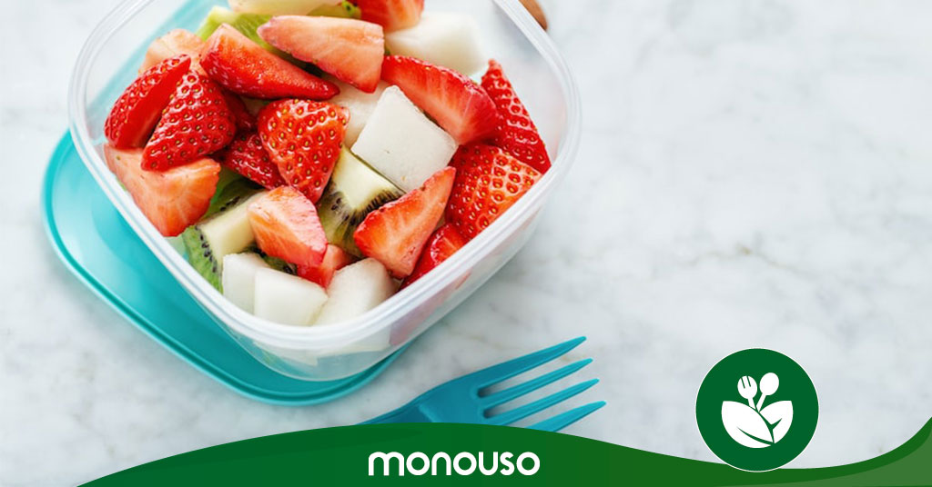 - Plastic bowls with lids. For yoghurt with cereals and nuts or other similar breakfasts, and also for peeled and chopped fruit. It can have more than one use and, if you are going to discard it, remember to ask him to use the container for the containers.