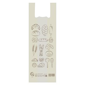 Home Compost T-shirt Bag for Bread, 30x60 cm, “Bakery” design. Made from renewable plant-based materials.