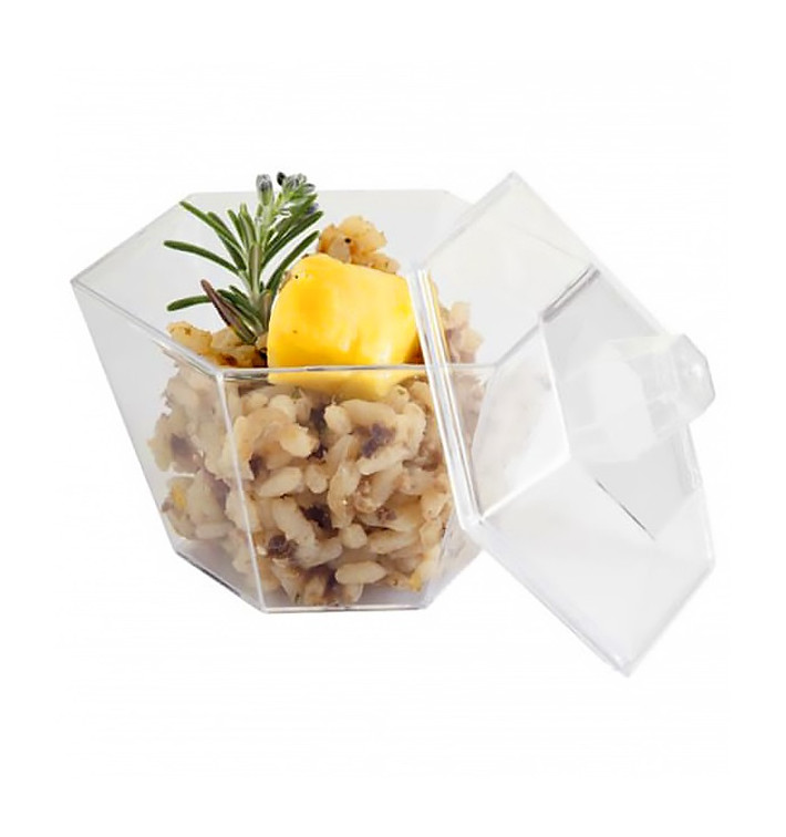 Plastic Bowl with Lid PS Hexagon Shape Water Green 7,8 x 7,8 x 6,8cm (576 Units)