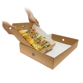 The kraft cardboard tray of 22,2x15,4x7,8 cm to be inserted in the window boxes provides stability and security to your food to preserve its integrity during transport. Food will arrive at its destination without warping or spilling.