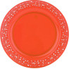 Disposable plastic plate made in polystyrene orange "lace" design 19 cm.