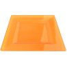Plastic plate extra rigid Square shape made in polystyrene orange 20x20 cm.