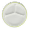 Disposable Chinet plate made of cardboard fibre 26 cm with 3 compartments in white colour. With a green border, this plate has an original design that will add style to your tables.