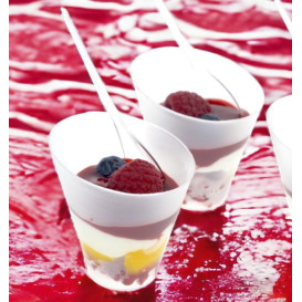 Miniature glass with a capacity of 65ml to serve snacks, small starters and desserts. Its design will give a different touch to your presentations.