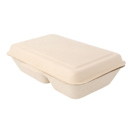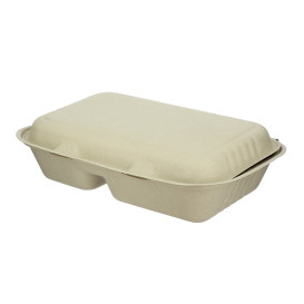 Sugarcane Hinged Container "Menu Box" 2 Compartments 22,5x16,5x6,4cm (500 Units)