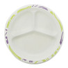 Disposable Chinet plate made of cardboard fibre 26 cm with 3 compartments in white colour. With a green border, this plate has an original design that will add style to your tables.